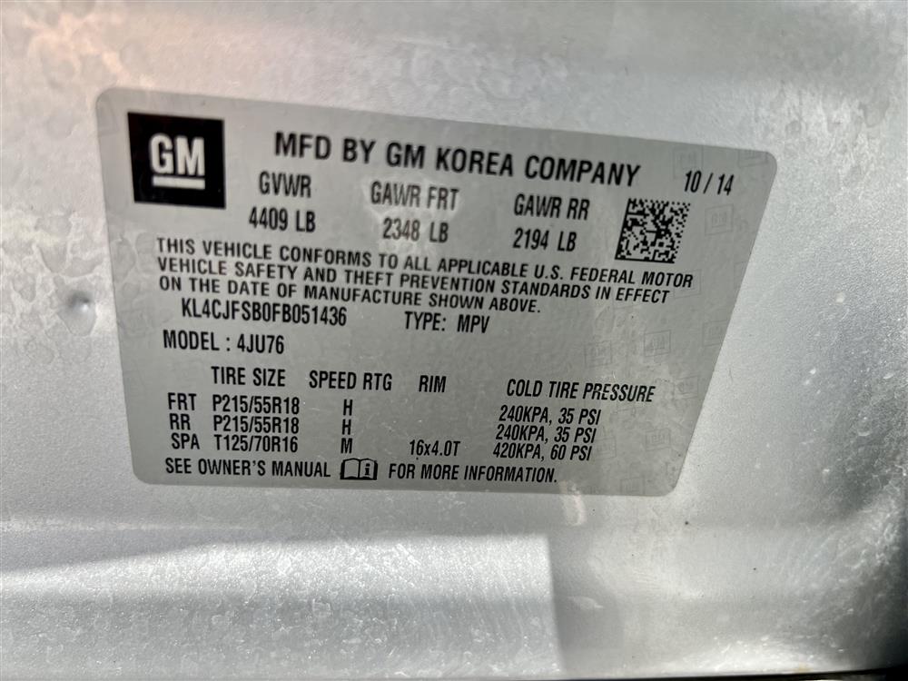 87K Miles. Call us today at 941-358-7997 $14,990.00 TypeTrucks & SUVYear2015MakeBuickModelEncore AWDBody StyleSUVMileage87964VinKL4CJFSB0FB051436 Options 5 Passenger Seating Adaptive Headlights Alarm Alloy Wheels Factory AM/FM Radio Audio - MP3 Decoder Backup Camera Bluetooth / Hands Free Carpet Mats CD Player Charging Port Cloth Seats Color Matching Bumpers & Mirrors Cup Holders Electric Mirrors Fog Lamps Leather Seats Leather Trim Power Door Locks Power Seats Power Windows Rear Spoiler Rear Window Defroster Tilt Wheel Tinted Windows